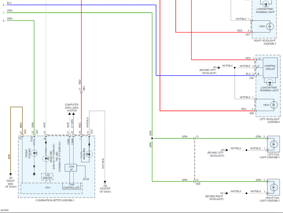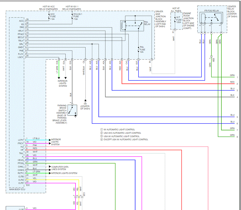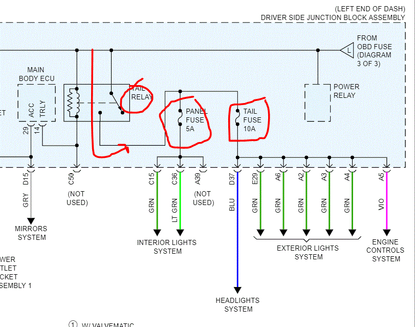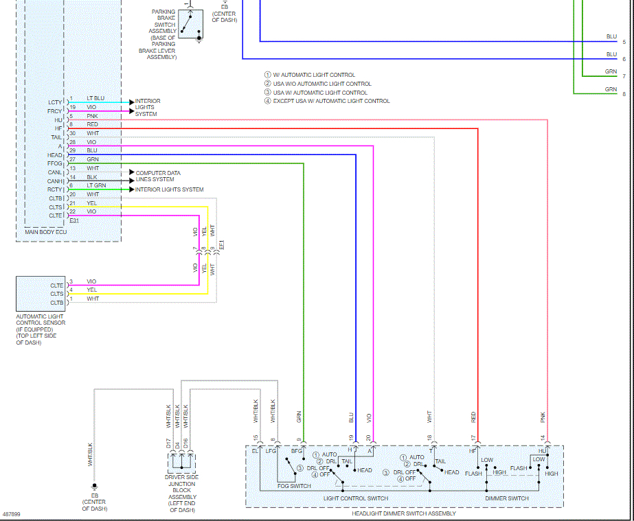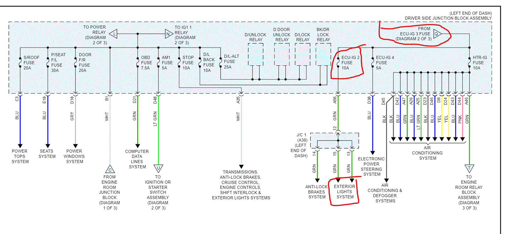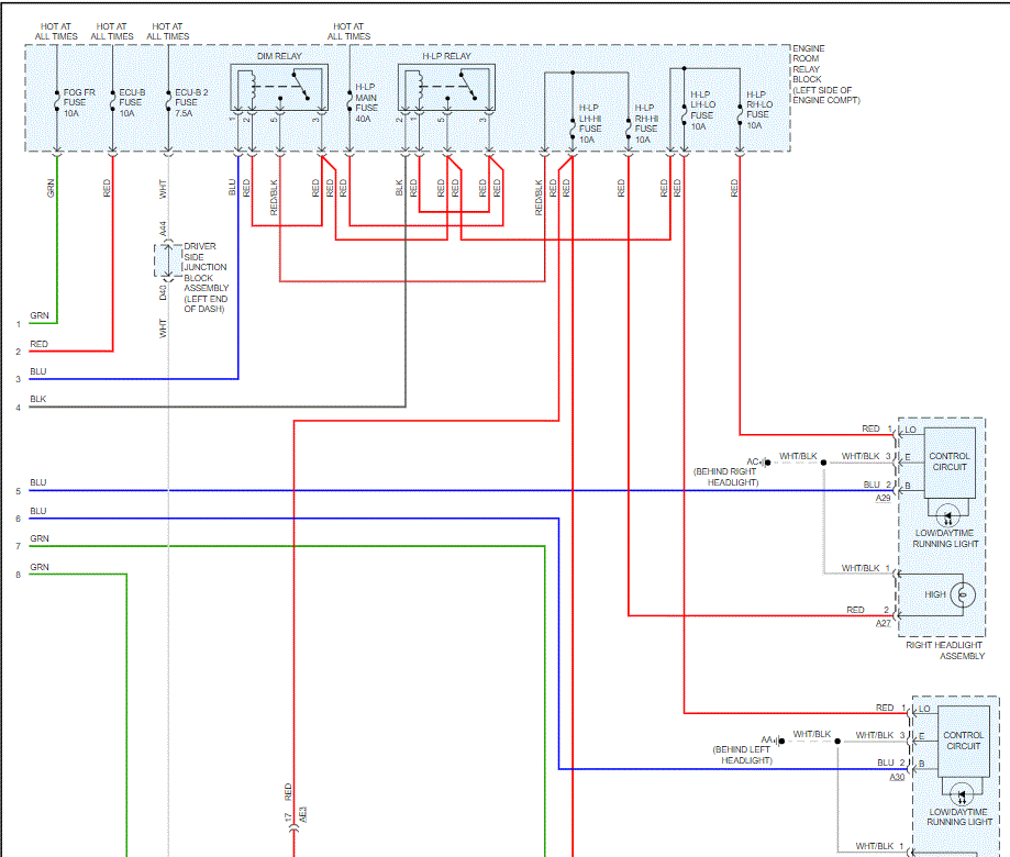 2) Next, look at pic 2. It shows the power supply to the headlights high beam. Start there and lets work backwards to see where power is lost. I highlighted the power supply for high beam. Check those wires for power. If none, move on to step 3