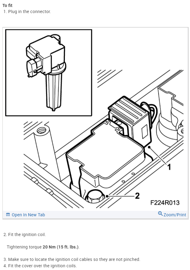 Next install the coils (seventh diagram) push them down on top of the spark plugs, plug the coil harness plug into the coils and install the hold-down bolt and torque to 15Lb ft.