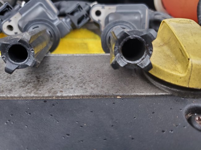 okay, that wet plug looks like its soaked in oil to me from the picture. So yes, you'll have to replace the valve cover gasket and the 4 O-rings. Then install the new spark plugs. You can either send a picture of the bottom of the coil that had the oil-soaked spark plug. or purchase another coil.