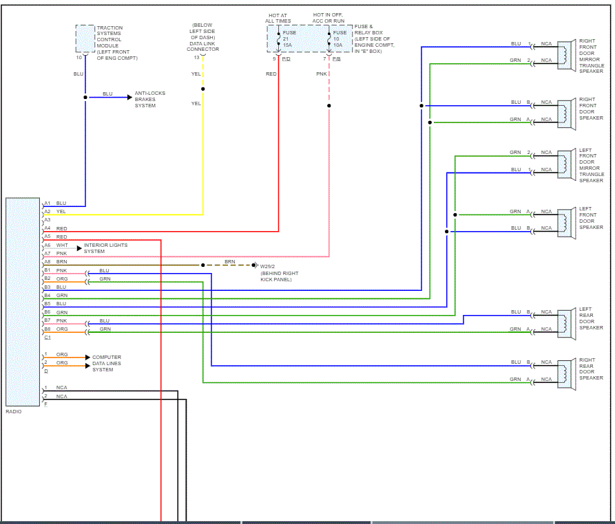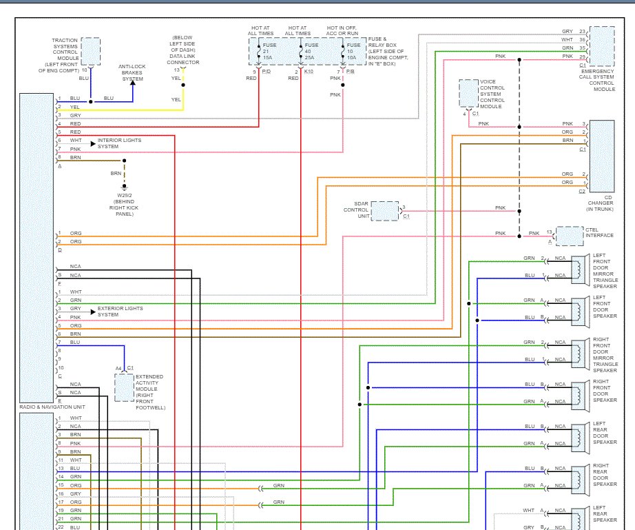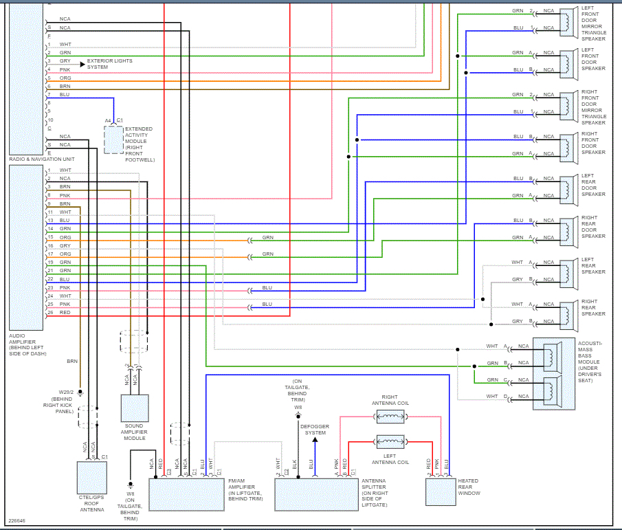 I attached four pics below. They were actually two pages, but I cut them in half to make them readable. The first two are page 1. The second two are page two. They both indicate wiring color to speakers. I hope this is what you meant.