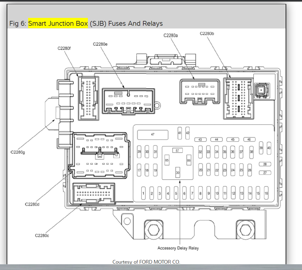 In the diagrams down below I have included a diagram of the Smart Junction Box which is under the left side of the dash. The fuses that control your stereo are fuse #28,38,13,39. Check these fuses and get back to us with what you find out.