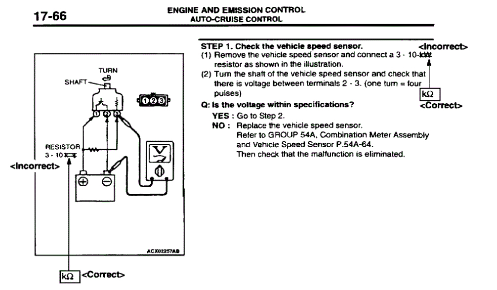 CORRECTED VEHICLE SPEED SENSOR CHECK (RESISTOR VALUE) - SERVICE MANUAL REVISION