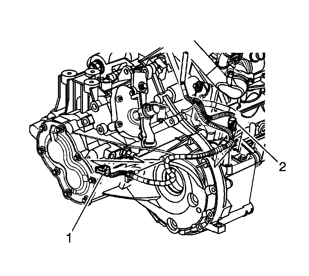 2. Disconnect the vehicle speed sensor (VSS) electrical connector (2).