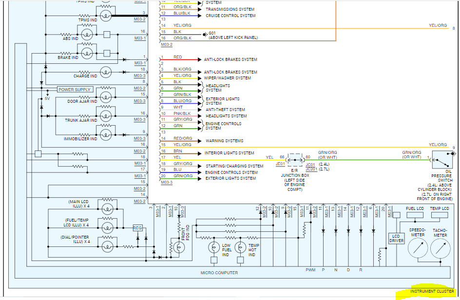 As far as the instrument cluster wiring schematics, I attached them below. Note that they were two pages long. I had to cut each page in half to make them readable for you. I did overlap each one so you can follow from one to the next.