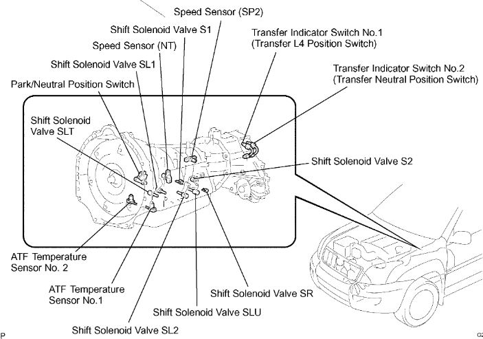 Both of the sensors are on the side of the transmission toward the top of the case about halfway back. The SP2 is the one monitored but they are both the same part number.