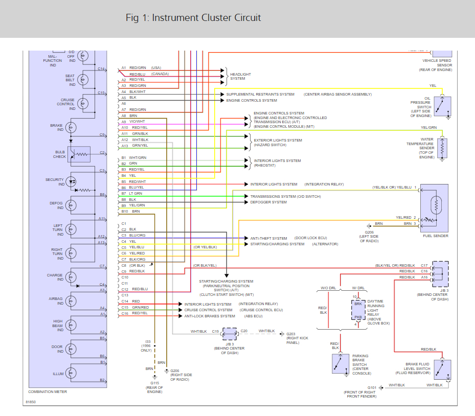 Original cluster gauges eventually failed over period of time. Indicator lights continued to work. New (used) cluster installed. Indicator lights work. Temperature gauge works. Odometer and trip now works. Gas gauge and speedometer do not work and stays at 0. If middle connector is unplugged gas gauge will register at full. Gas take is currently full.