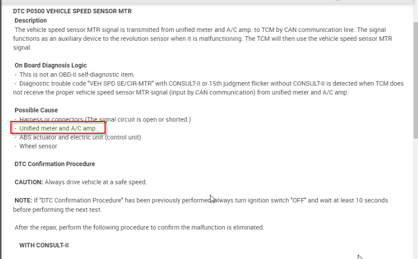 P0500 - Vehicle Speed Sensor