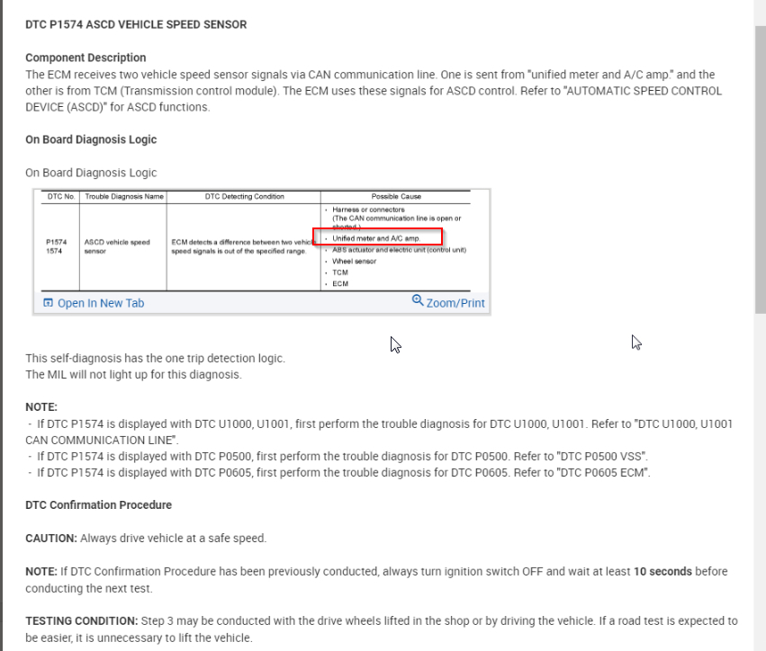 P1574 - ASCD Vehicle speed sensor