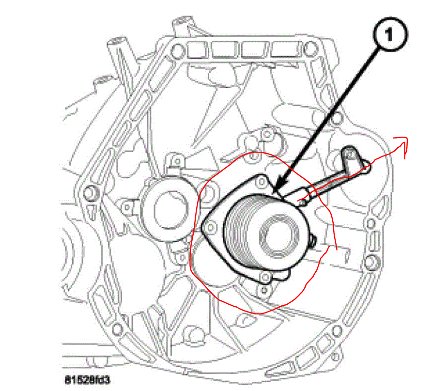 If that is good, on the transmission bell housing, you will see where the hydraulic hose goes and mounts to a slave cylinder. The slave is inside the bell housing on this vehicle (see pic 2). So, check to make sure there is no evidence of a leak where the trans and engine bolt together near the bottom of the trans. Also, inspect the line itself as well as the brake fluid level.