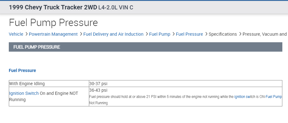 I attached the manufacturer's fuel pressure specifications below. See pic 1