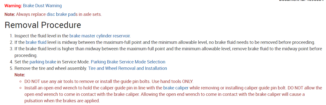 Prior to any rear disc brake or parking brake service, the parking brake actuator must be placed in Service Mode.