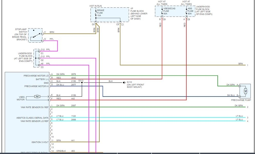 The reason that we must understand system pre-fill is that pre-fill may lead to customer concerns. Any time the ABS pump motor is active, the motor draws a large amount of current, and may cause the vehicle lighting systems to dim noticeably. When ABS activity occurs, most drivers understand that this activity is the cause of noises and dimming lights. Likewise, when an actual VSES event occurs, the Stability System Active message is displayed, which helps drivers understand why these other conditions occur. Since pre-fill is not an actual VSES event, but preparation for a pending event, no message is displayed. Also, system noise during pre-fill is very minimal. A customer may become concerned with what is perceived to be an electrical problem, due to the intermittent dimming lights, when, in fact, no malfunction exists and the condition is normal.