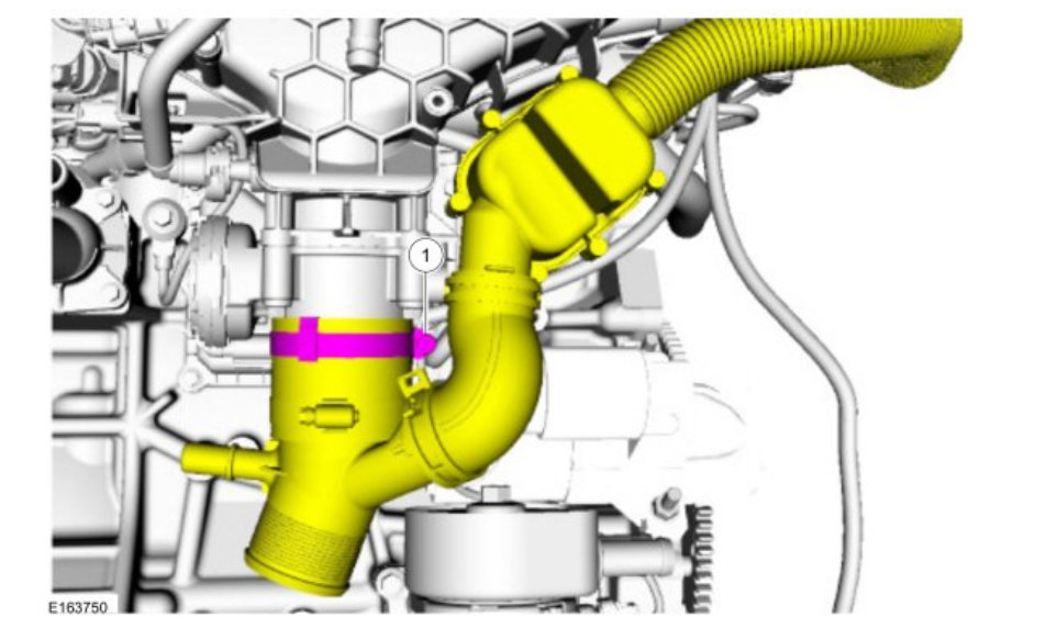 6. NOTE: When disconnecting the Throttle Body (TB) electrical connector disengage the red locking tab on the Throttle Body (TB) electrical connector by sliding it to the rear of the Throttle Body (TB) electrical connector, away from the Throttle Body (TB). Squeeze the Throttle Body (TB) electrical connector while removing.