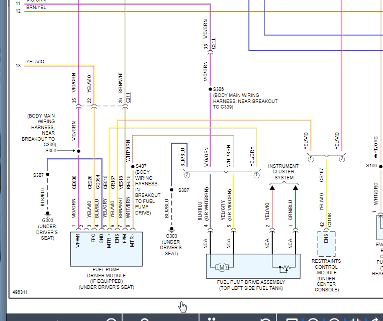 However, this code is for a fuel pump control circuit out of range so we need to check voltage at the driver module which should be under the front seat. I attached the wiring diagram, so let's check for 12 volts on pin 1 and then make sure the ground is okay on pin 4.