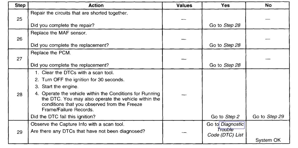 The powertrain control module (PCM) uses the generator turn on signal circuit to control the generator. A high side driver within the PCM allows the PCM to turn the generator ON and OFF. When generator operation is desired, the PCM sends a 5 volt signal to the voltage regulator via the generator turn ON signal circuit. This causes the voltage regulator to begin controlling the generator field circuit. Once the generator is enabled by the PCM, the voltage regulator controls generator output independently of the PCM. Under certain operating conditions, the PCM can turn OFF the generator by turning OFF the 5 voltsignal on the generator turn ON signal circuit. The PCM has fault detection circuitry which monitors the state of the generator turn ON signal circuit. If the fault detection circuit senses a voltage other than what is expected, this DTC will set. The voltage regulator also contains fault detection circuitry. If the regulator detects a problem, the regulator will ground the generator turn ON signal circuit, pulling the voltage low. This also causes the PCM to set the DTC.