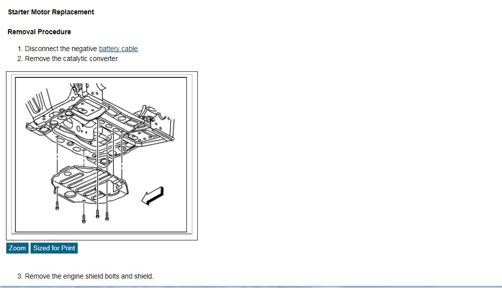 The starter is located under the truck, above a catalytic converter, and near the transmission. I have attached the removal procedure, captured from AllData. Installation is the reverse.