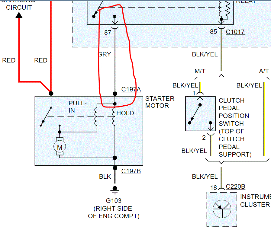 I attached a pic of the starter where I am talking about. One terminal is much larger in diameter than the other. The larger one is a heavier cable straight from the battery. The other wire, the grey one, will connect to the other smaller diameter terminal on the battery. If I recall, there may be a plastic shield over the terminals. If you vehicle still has it, remove it to access the terminals.