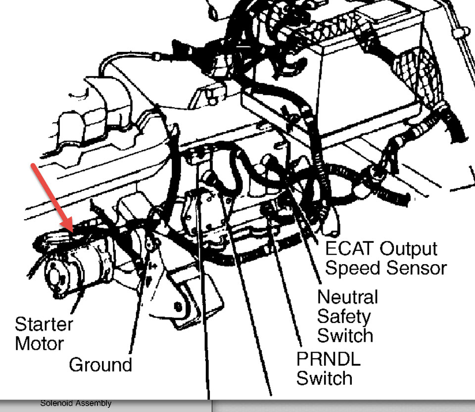 see picture for location which would be front of engine. you need to remove negative battery cable from battery, remove cables from starter and remove bolts that hold it in. reverse for reassembly.