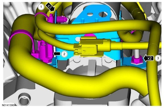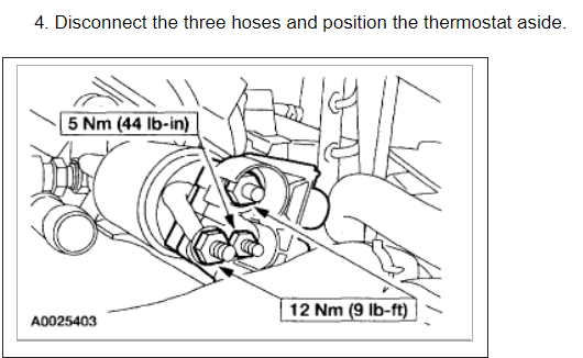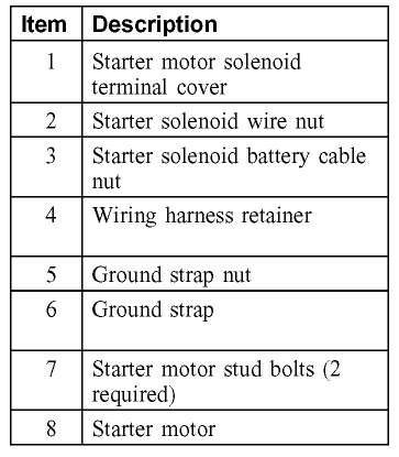 Disconnect negative battery cable. Remove air cleaner outlet tube and air cleaner assembly. Drain engine cooling system. Disconnect the 3 hoses and position thermostat aside. Remove starter solenoid cable nuts and position solenoid cables aside. See Fig 8 . Remove starter motor mounting bolts and starter motor. See Fig 9 . To install, reverse removal procedure. Tighten bolts to specification. See TORQUE SPECIFICATIONS