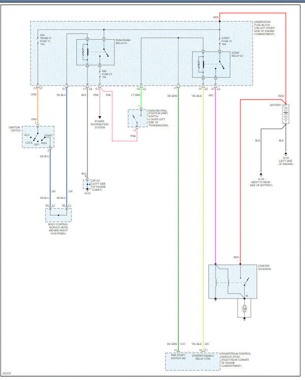 I attached two pics below. First, I highlighted the relay in the wiring schematic. The second pic is the entire starting schematic for your reference.