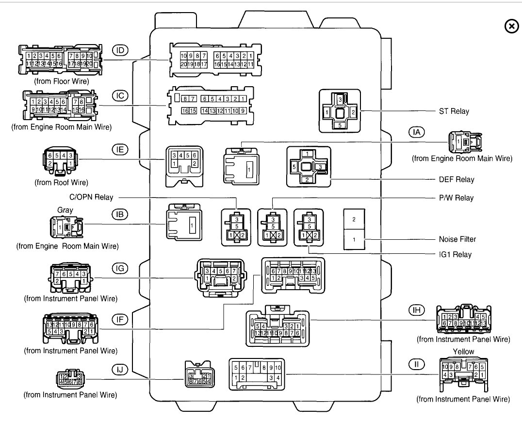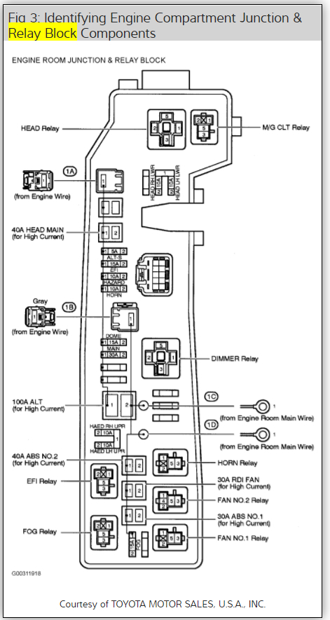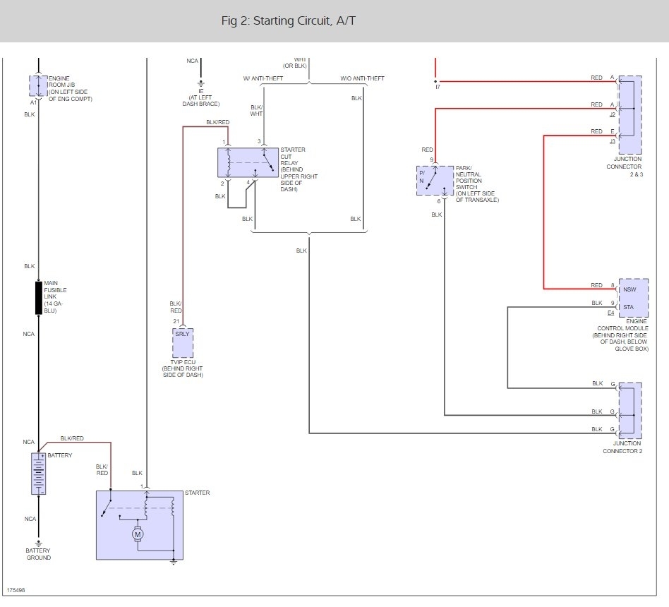 It is in the junction box in the car under the left side (ST relay). I attached pictures for you of the location and where the relay is located as well. I also attached a wire diagram of the starting system for you. Check out the diagrams (Below). Please let us know what happens.