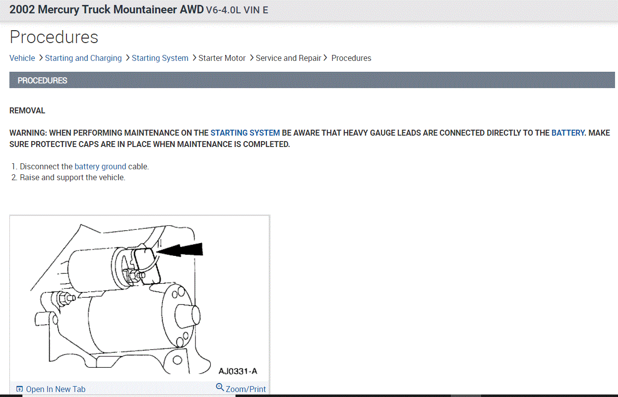 One thing I need you to remember, you must disconnect the negative battery terminal before starting to work on the starter. There is a 12v power supply constantly from the battery that can short.