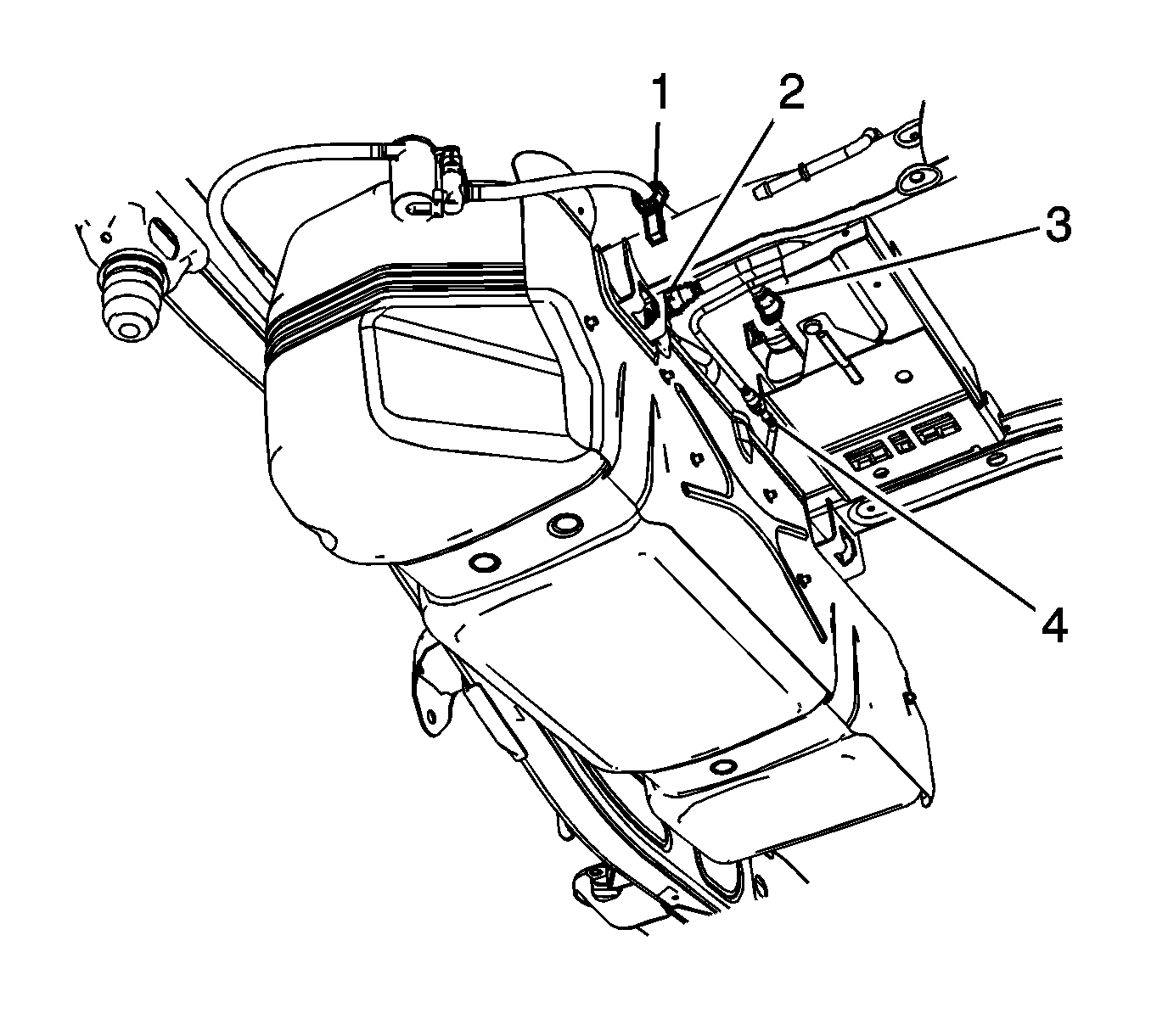 8. Disconnect the EVAP canister vent solenoid pipe quick connect fitting (3) from the EVAP canister.