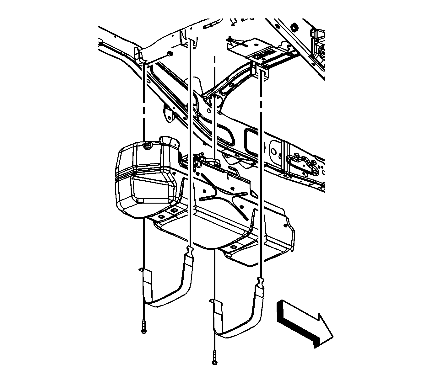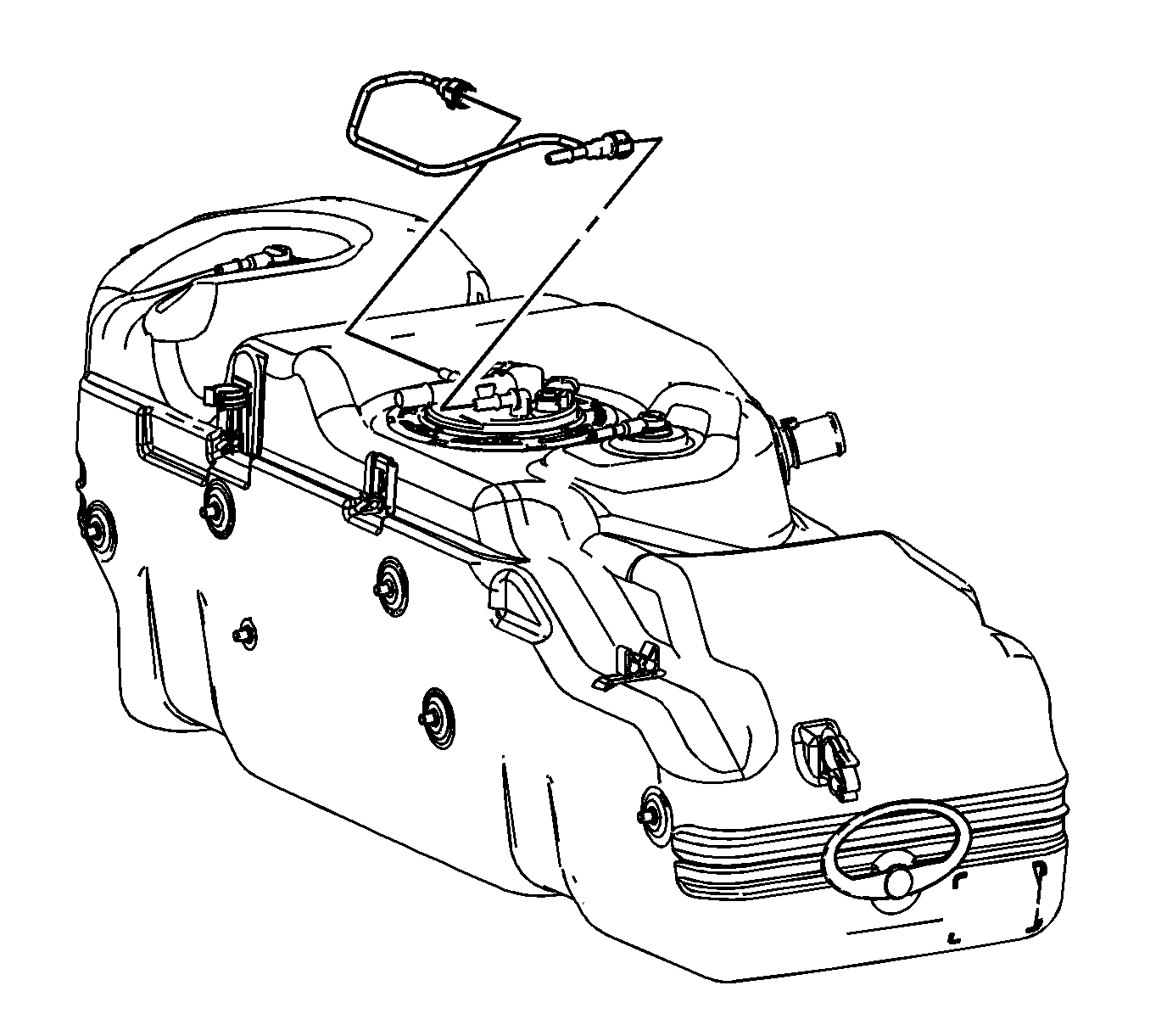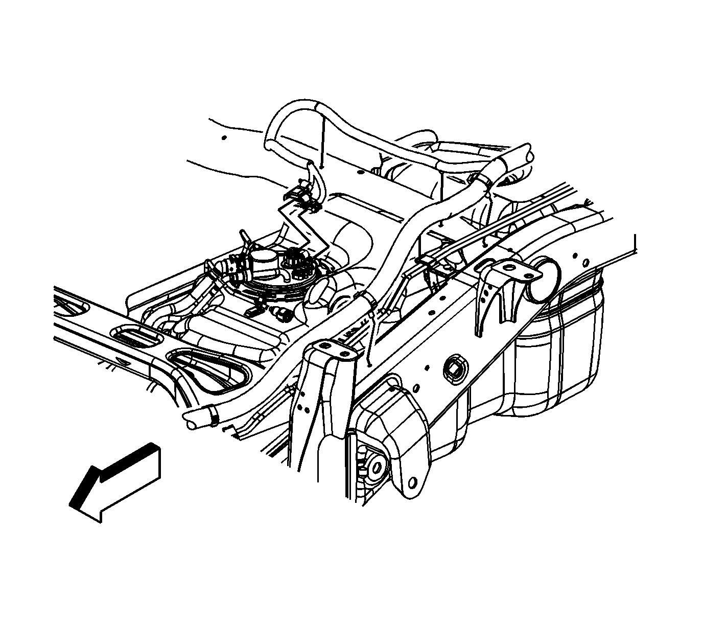 Important: When lowering the tank, ensure that the fill neck on the tank does not get hung up on the chassis wiring harness.
