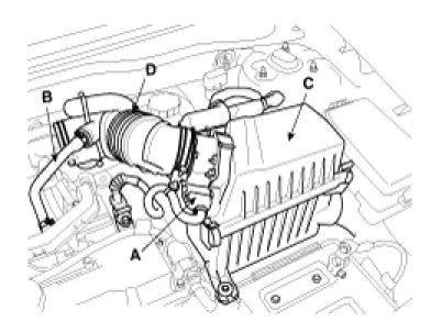 4. Disconnect the starter cable (A) from the B terminal (B) on the solenoid (C), then disconnect the connector (D) from the S terminal (E).