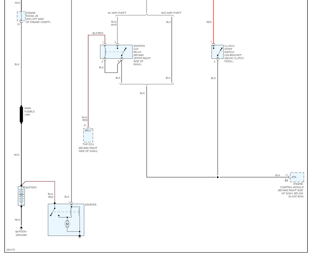 After several attempts the car starts. Sometimes I hear the starter free spinning. Sometimes it just clicks. Sometimes I hear the engine turn over at the beginning but at the end the starter free spin. Please can you send me a wiring diagram of the starting system for my car because i know there is a starter relay and a clutch safety switch.