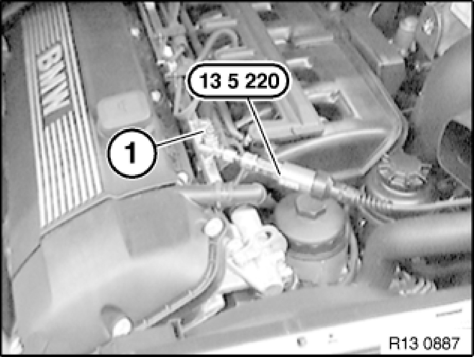 Unscrew check valve (1) on special tool kit 13 5 220.