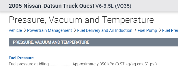 If you look below, I attached the manufacturer's fuel pressure specifications for this vehicle.