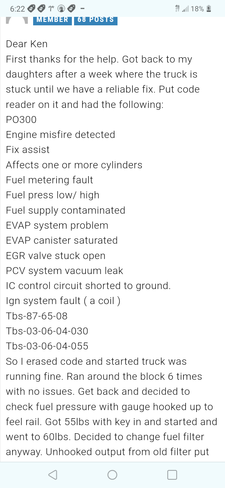 When starting my vehicle now it misses and runs rough during startup. Once it runs for a few minutes it gets better. I can then drive it with no issues and accelerates good and goes back to a normal idle. I can run it up to 3000 rpm while sitting still and it seems to be okay. If I shut it back down and started at back up in a few minutes, it does the same thing. The last thing I did a few months ago when it was missing bad and would not accelerate with a service engine light with a bad purge solenoid coil which I changed. Code was gone and ran okay until now with this problem. There is not code yet since this problem.