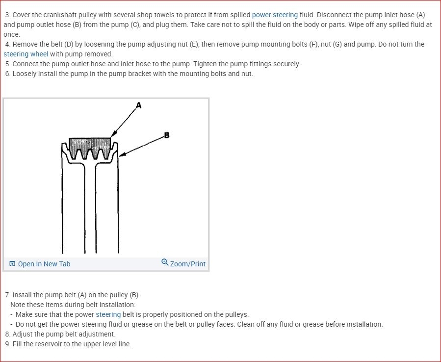 I attached the process of testing the power steering system and the procedure of replacing the pump.