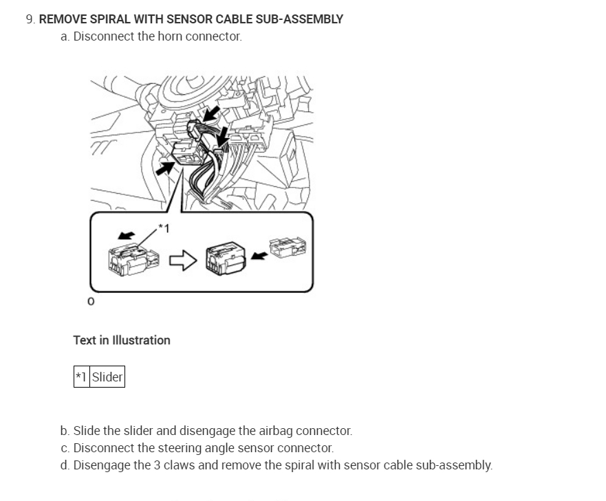 Do not replace the spiral with sensor cable sub-assembly when the ignition switch is on and the battery cable is connected.