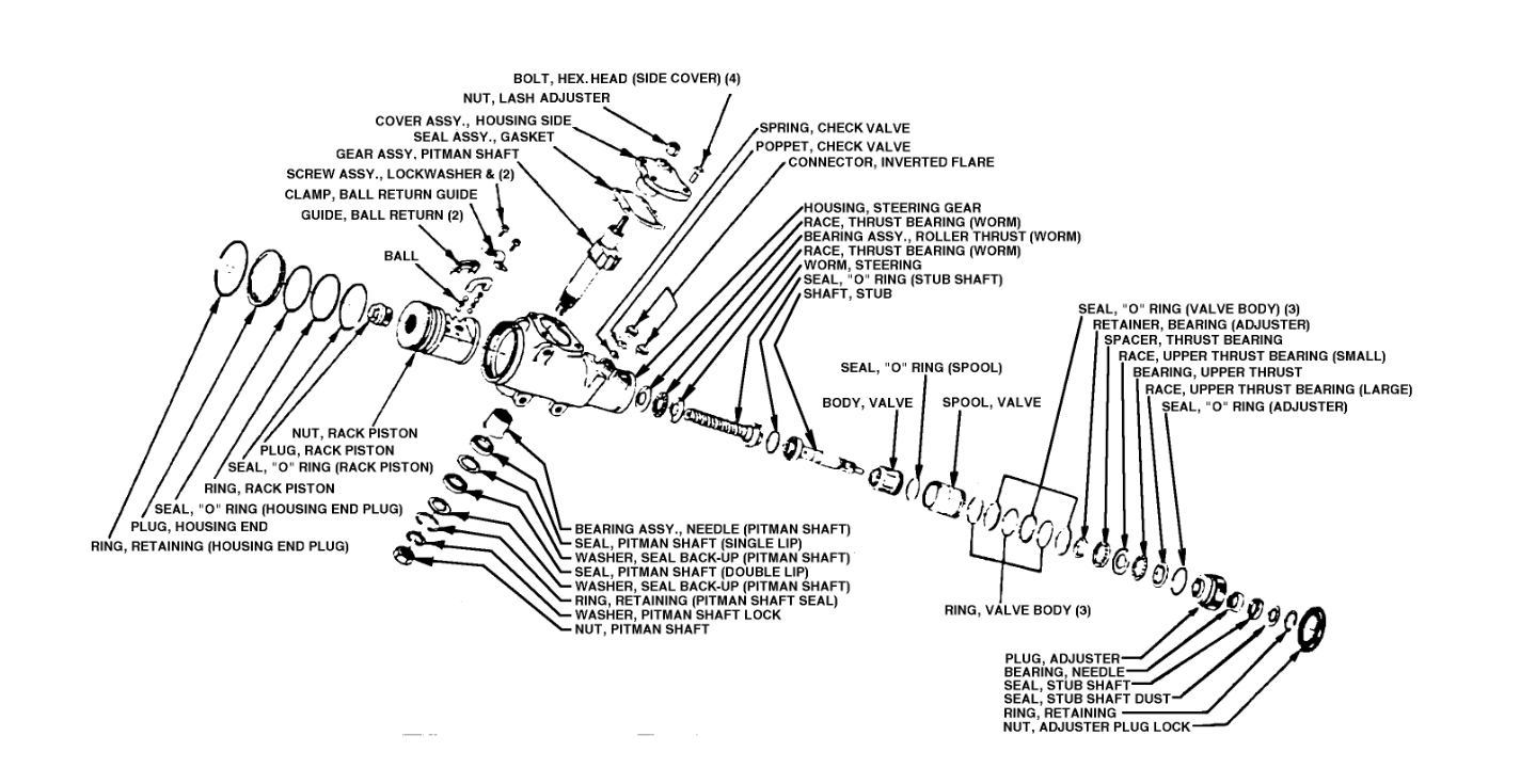 To offer more clarity, with the top cap off, I pulled the large snap ring that holds the front cap in place, then I turned the input shaft, so that it would push the front cap out. I turned it just too far, noting that the sector shaft teeth just disengaged. I pushed the main/input shaft/worm gear (not sure of the correct term) back into the box from the front, with the front cap removed. I didn't think that the input shaft moved enough with the two teeth disengaged to create an issue. But now, with my box only having power assist in one direction, that moment immediately stuck out in my mind as the moment that something went wrong. It doesn't seem like anything was damaged, only that I didn't put it back together totally correct. Would love some tips on getting this thing to work right.