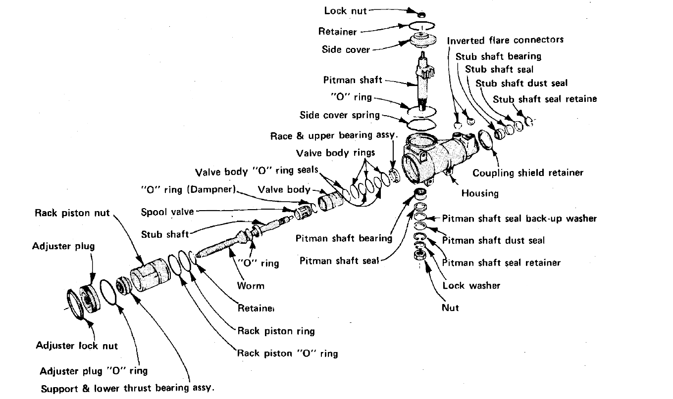 Here are exploded diagrams of the steering box below so you can disassemble the unit to see what went wrong, or you can get a rebuilt box. Check out the images (below). Please let us know what happens.