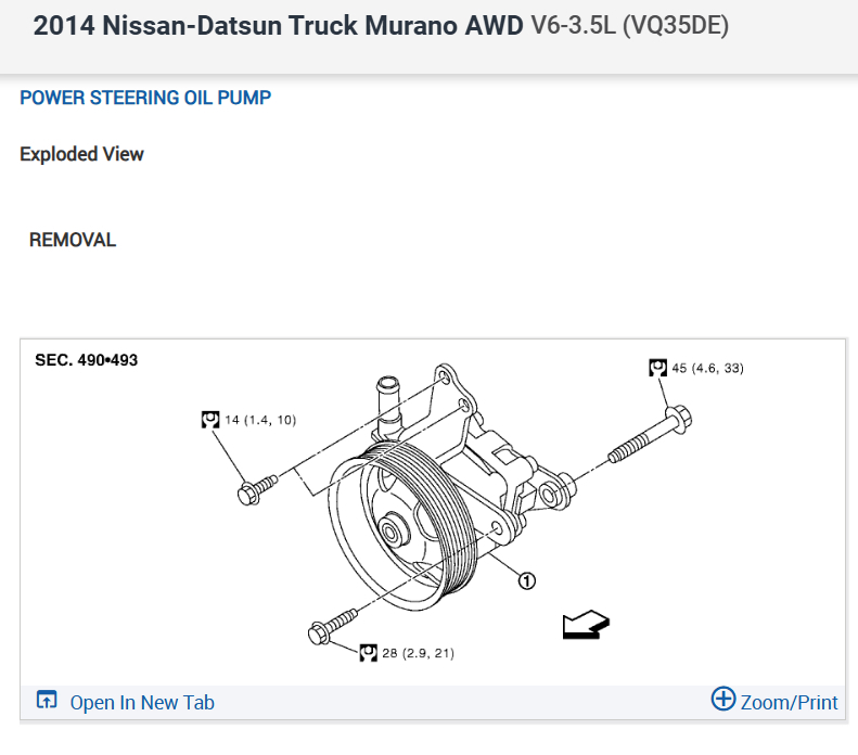 The vehicle listed above had the steering pump replaced, but now there's a puddle of fluid on the ground following the replacement. I can fill the reservoir with fluid before starting the engine, but it bubbles when I turn the wheel while idling. There were no leaks prior to the pump replacement. The steering pump was replaced because it was difficult to turn and made noise while turning.