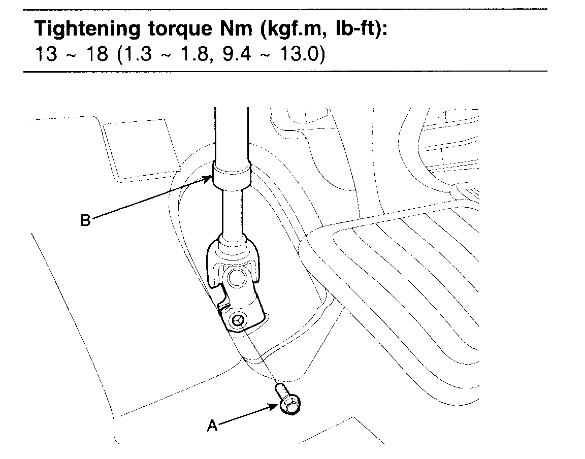 3. Remove the bolt (A) connecting steering column to universal joint.