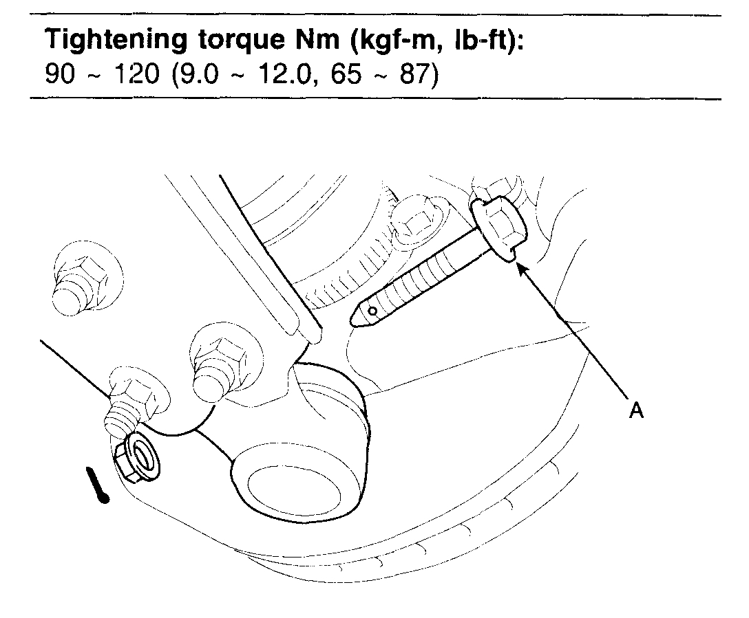 12. Remove the rear roll stopper (A) from the sub-frame.