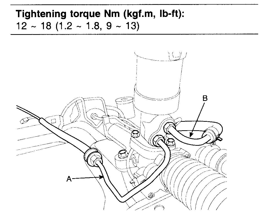 13. Disconnect the pressure tube (A) and return (B) from the valve body housing.