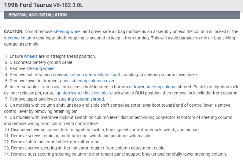 I have attached all the available information on the steering column replacement and disassembly and re assembly.
