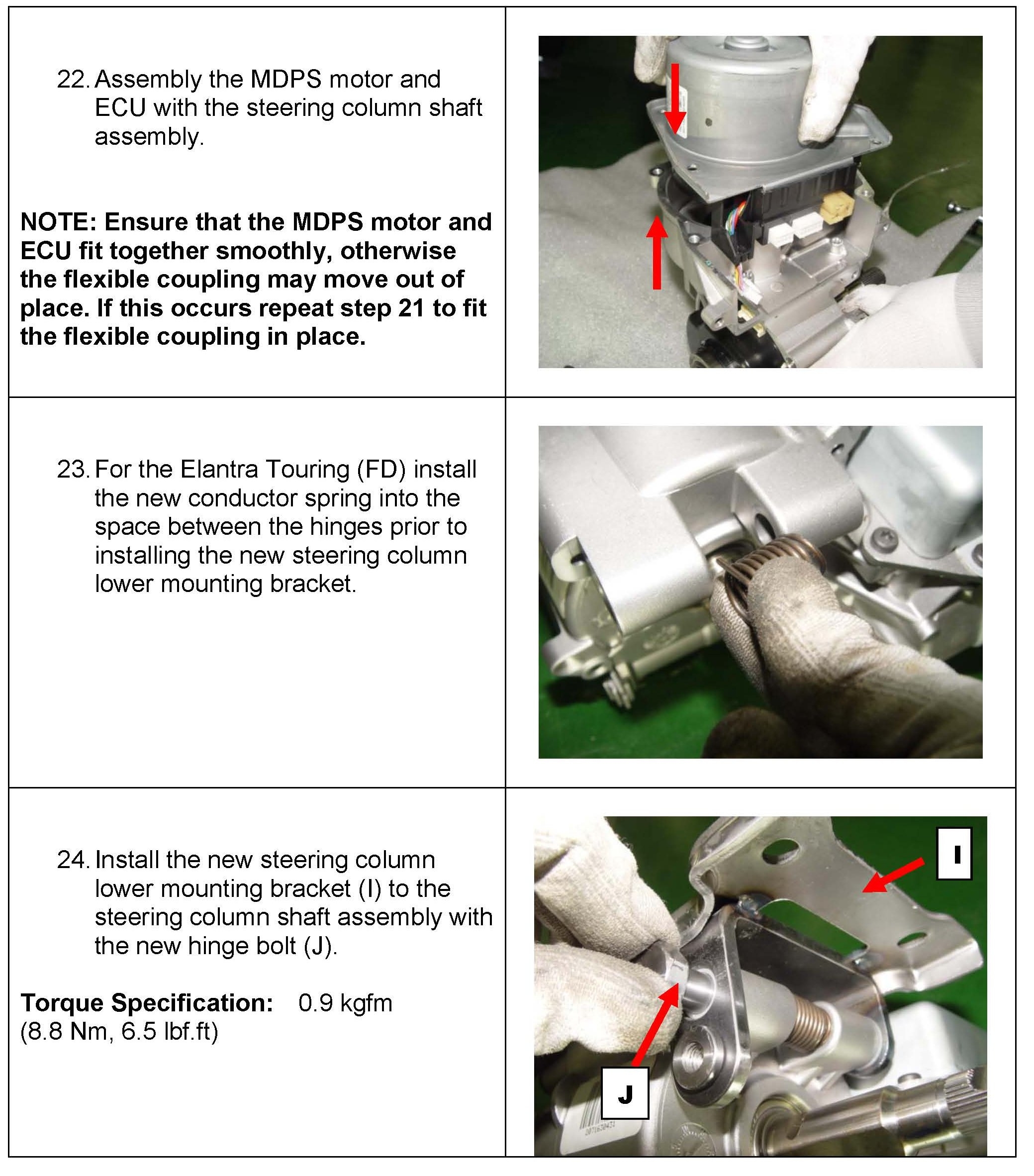 Some 2007-2010MY Elantra and 2009-2010MY Elantra Touring vehicles may exhibit a slight rattle noise from the steering column while driving on rough roads at low speeds or while turning the steering wheel.This condition is cause by the worm shaft flexible coupling in the motor driven power steering (MDPS) column. This bulletin provides the procedure to repair this condition.
