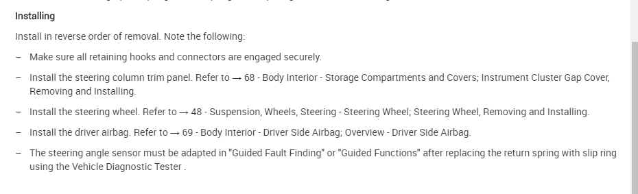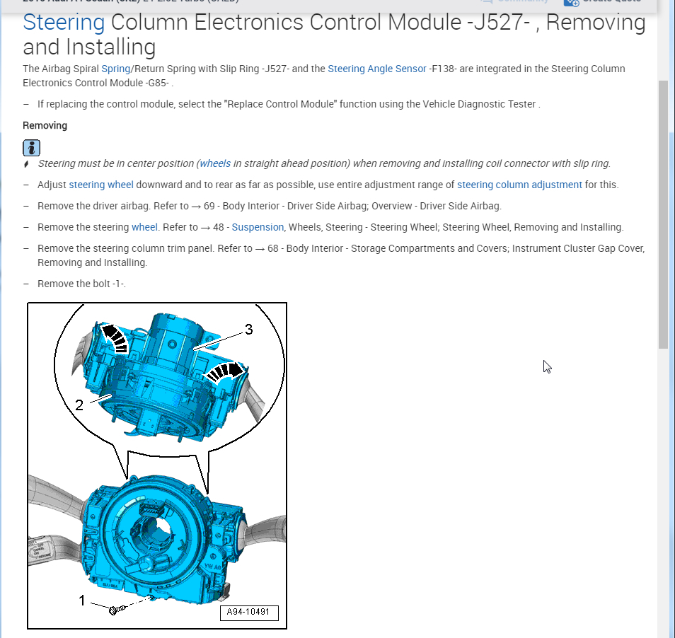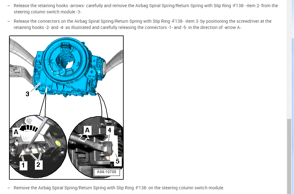This is called the airbag spiral spring or clockspring. I attached a bit of info on this but if you are going to do this yourself, make sure you disconnect the battery because you will be removing an airbag.