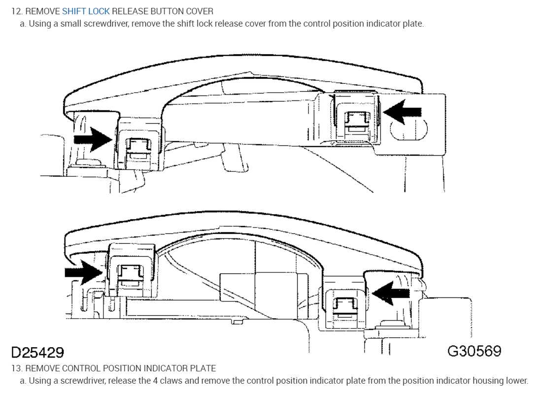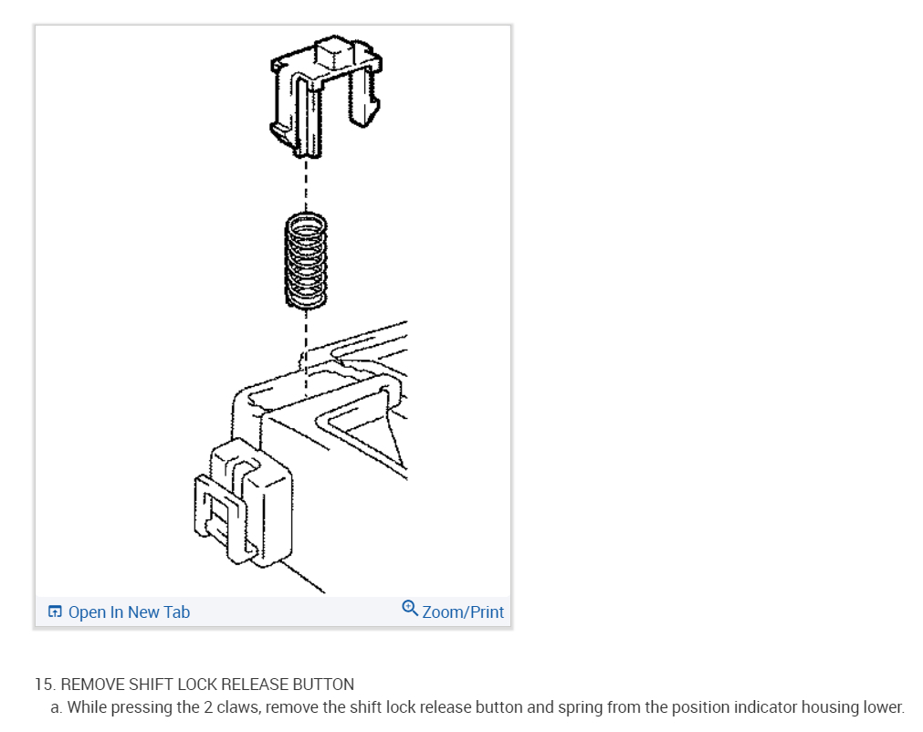 The shift lock button on my shifter often sticks when I try to shift out of park. I start the car, release the emergency brake and press down the brake pedal (the brake lights glow) but the shift lock button will not immediately release. Sometimes it only does it once or twice. Sometimes it take fifteen to twenty tries.