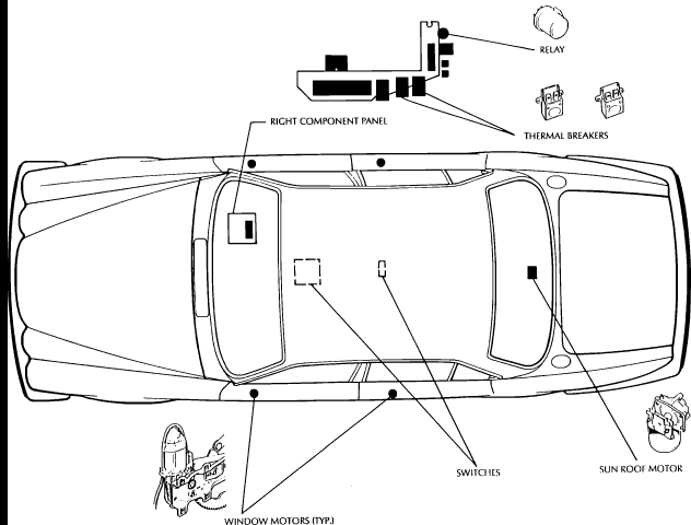 We have looked at all fuse boxes. Left and right under dash, Under the hood. No fused specifies which fuse operates the electric window or roof. The right box has only one row. The markings do not specify or show to Windows or roof. One individual stated on this site, second row forth down. But there is not but one row of fuses, not for windows, or at least it does not say so.