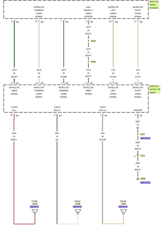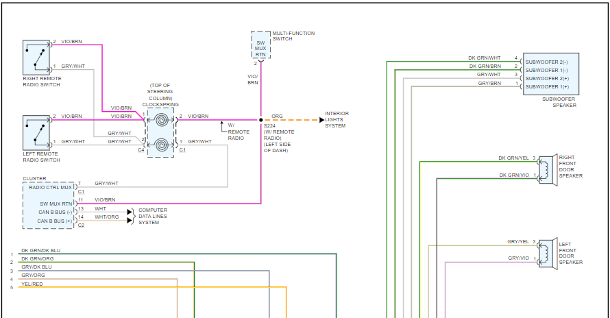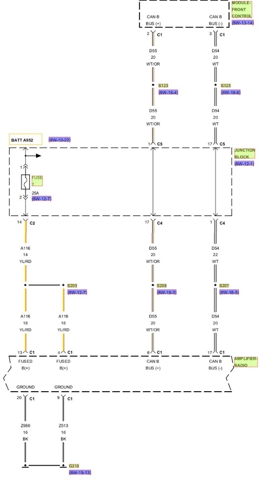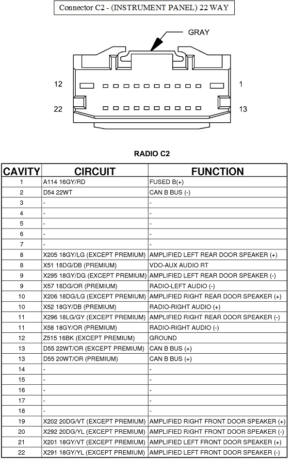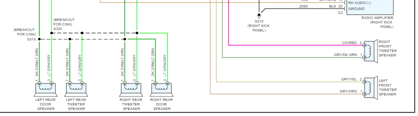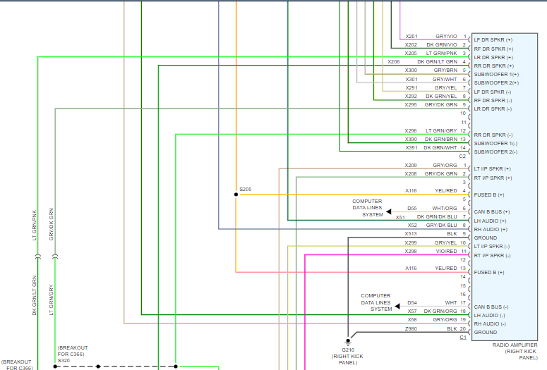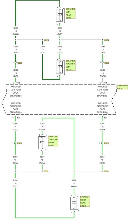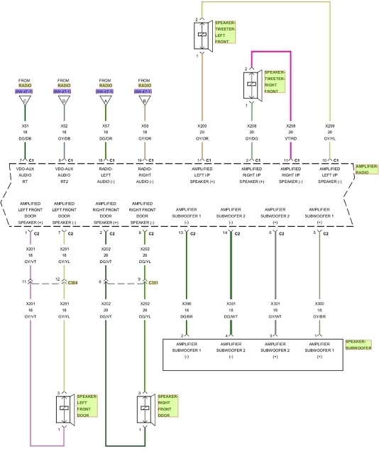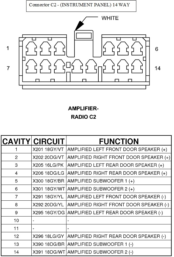Here is a wiring diagram for your car's premium sound system amplifier which is mounted in the right kick panel. I've cut the picture into 3 pieces so you can view larger.Hope this helps and thanks again for using 2CarPros.