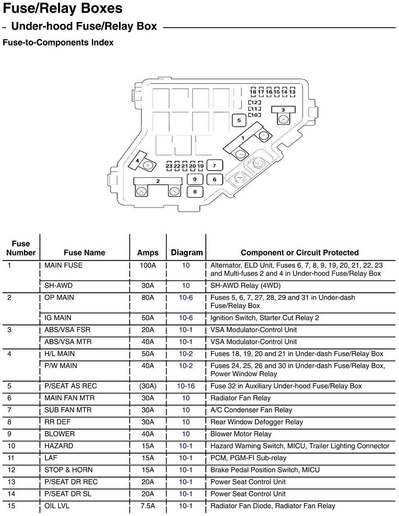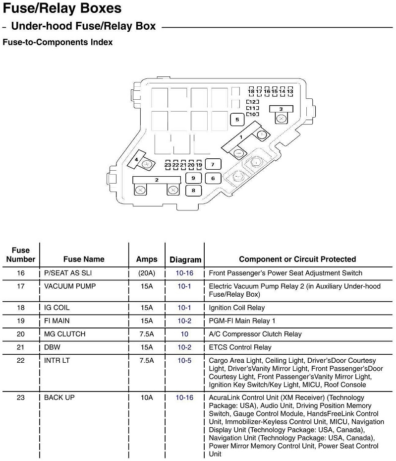 The result is that the RDX cannot be shifted out of park. Replacing the fuse works for a few days. I am aware of the hack to be able to shift gears by manipulating the area right next to the shifter with a screwdriver. What I want is for the fuse to stop blowing. Presumably, there is a short somewhere. How do I figure out where it is? Can I narrow it down to either the Horn or the Brakes? The brake lights do not work when the fuse is blown, but that seems logical. Is there any type of test I can do to isolate the problem? Would I have to do the test while the fuse is blown, or only when the fuse is replaced and working?