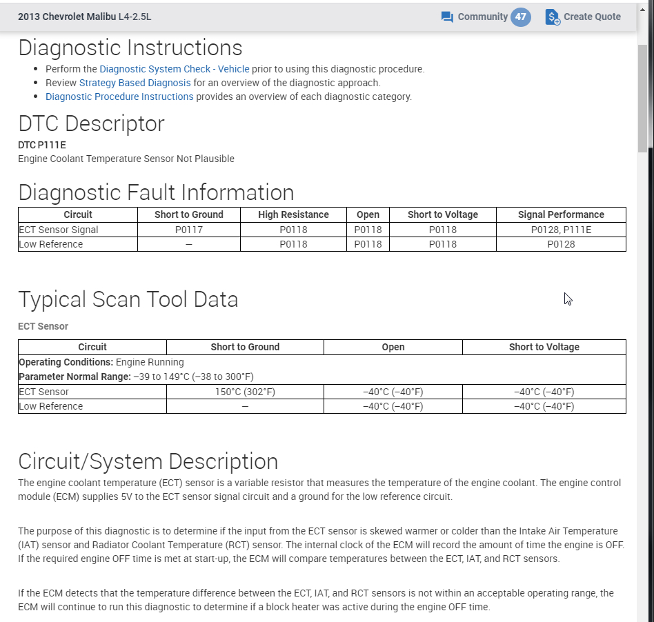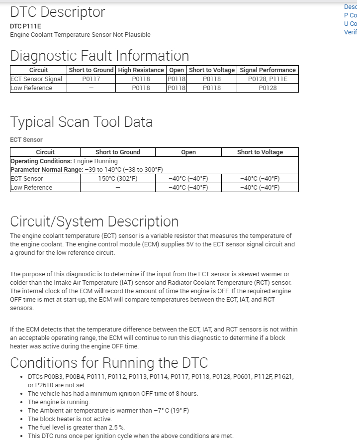 The owner has some kind of electrical issue. The temperature gauge for engine temperature on the cluster doesn't move, and the engine light is on throwing 3 codes: P111E, P00B4, and P0119. The owner replaced the thermostat housing which has a sensor made into it, and also the radiator temperature sensor on the radiator. If I clear the codes while the car is running, the gauge moves from 0 to where the temp should be, but will not work when I crank the car back up. Also the fans come on immediately when you start the car.
