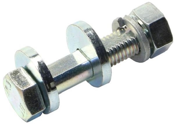 Chrysler uses "cam bolts" for the lower of the two bolts. Those have offset heads for a couple of reasons. First, "camber" can be adjusted to a perfect setting very easily by just rotating the bolt head. Second, that offset head sits in a pocket that holds the strut from shifting on bumpy roads, even when the nuts aren't tightened to specs. As GM vehicles come from the factory, once the hole is elongated, they rely strictly on the clamping forces of those two bolts to hold the strut in alignment. To ensure they don't slip, most conscientious alignment specialists will want to sell you a pair of aftermarket cam bolts, especially if they do the grinding on the lower holes. Those provide the same ease of adjustment and a much better holding power over the original bolts. There's a few different styles of these bolts. The most common is shown in the third photo. Without those, we have to loosen the two bolts, shove the wheel closer to where we want it, tighten the bolts, take a new series of readings on the alignment computer, loosen the bolts, shove the wheel, hope for the best, tighten the nuts, take another set of readings, and do that sometimes a dozen times before we decide it's "close enough" and move on. Besides both wheels being in specs for good tire wear, it's critical camber be the same on both front wheels to avoid a pull to one side. Setting one wheel is hard enough. Matching the second one to the first wheel gets to be real tedious and frustrating.